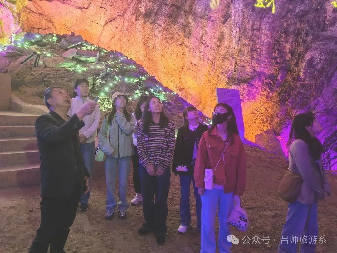 高经理讲到离石风貌“外看骨脊山,内看白马洞”,白马仙洞作为天然的溶洞奇观,是离石市区的一张旅游名片,但景区缺乏专业人才,尤其是在旅游旺季,工作人员短缺的现象比较突出,景区能成为吕梁师范高等专科学校旅游系的实训基地,让这一问题迎刃而解,有效实现了双方协作共赢。尤其是白马仙洞拥有丰富的农耕研学、动植物研学以及地质研学等资源,未来景区和学校深度合作,为景区开发研学旅行产品市场的想法打开了新思路。