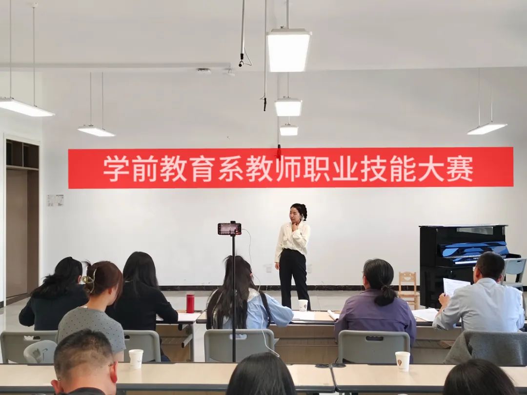 本次比赛坚持“以赛促教、以赛促学、以赛促改、以赛促研”的宗旨,推进“岗课赛证”综合育人机制,对标“山西省第十七届职业院校技能大赛”的“幼儿教育技能”赛项指标要求,全面考查选手的专业理论基础知识、教育活动设计、保教活动分析、教师基本功和创新、应变能力等幼儿教师专业核心能力与职业综合能力,全方位培养青年教师的师德践行能力和专业教学能力。参赛选手认真严谨,评委公平公正,赛场气氛热烈,收效良好。