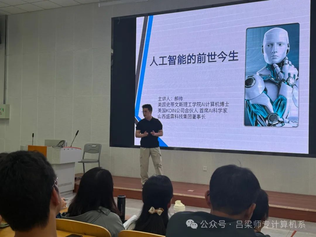 5月16日下午四点,人工智能培训讲座在吕梁师范高等专科学校计算机系举行。郝帅博士,现任山西盛霖科技集团董事长应邀作了题为“人工智能的前世今生”的精彩演讲。计算机系主任秦瑞峰、计算机系代课教师以及系部200余名学生到场参与讲座。(详细……)