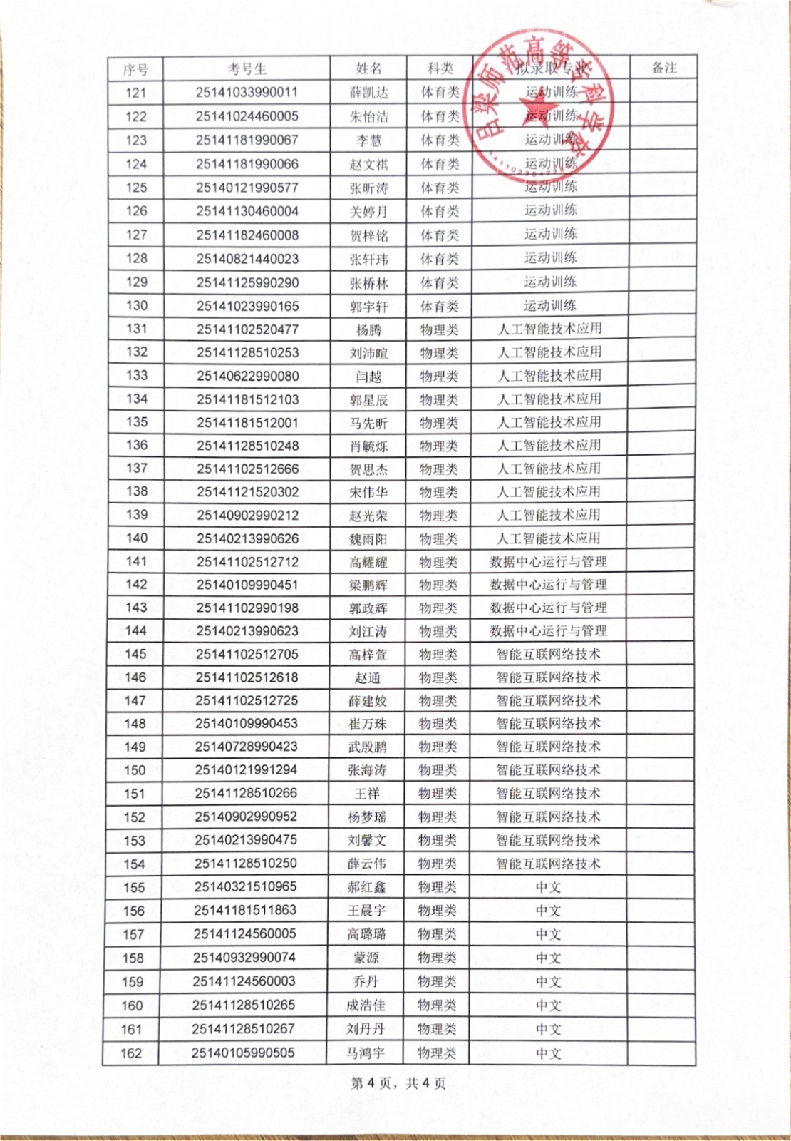 吕梁师范高等专科学校2025年高职单招拟录取公示